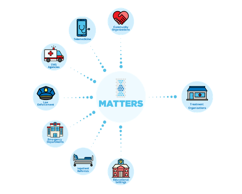 MATTERS® works to improve care outcomes for those with substance use disorder through its online rapid referral platform, robust follow up and support services, network of harm re-duction vending machines and direct-mail supplies, and through targeted public health education campaigns. As the opioid crisis evolves, MATTERS has strategically pivoted to meet individuals and organizations where they are by bridging gaps and integrating support.